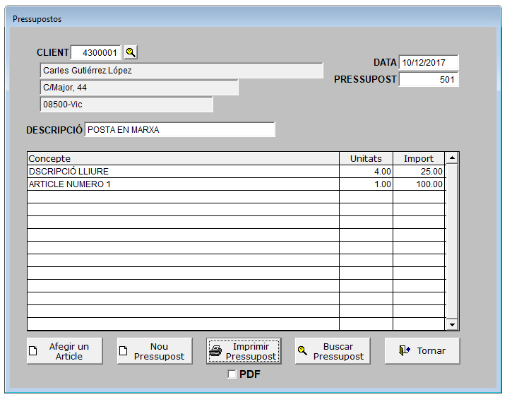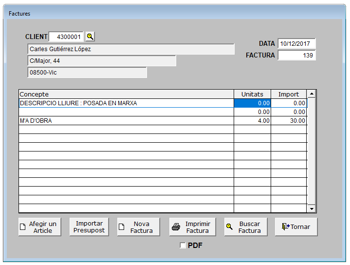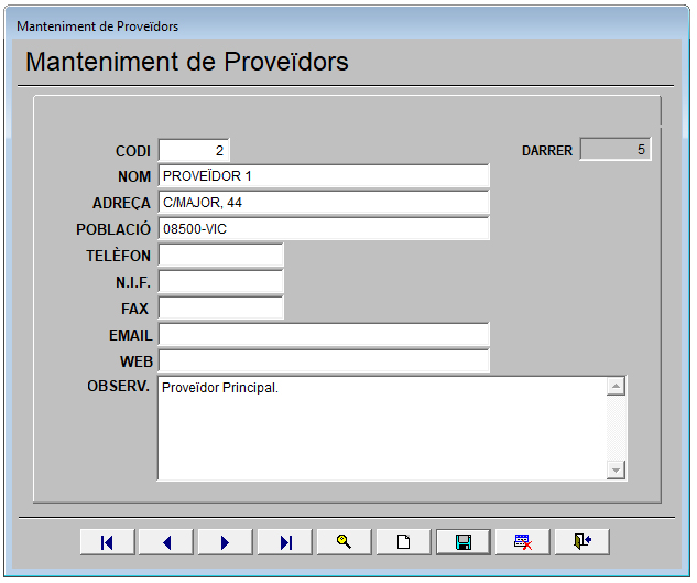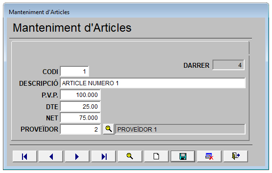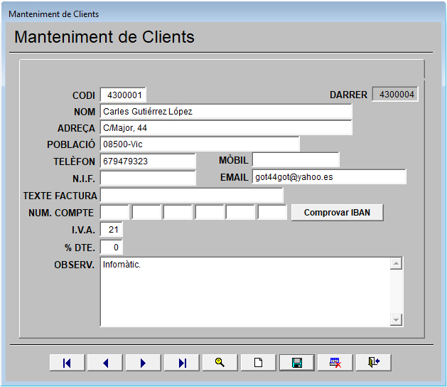 Amb la gestió Bàsica, tenim els fitxers de Clients, Proveïdors i Articles. Dins de cada fitxer tenim els camps necessaris per poder gestionar totes les dades correctament (fes clic sobre les imatges per ampliar-les.
